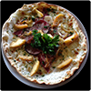 | - La Reine Tomates, jambon, champigons, crème fraîche, mozzarella, oeuf. - La Montagnarde Tomates, jambon de pays, champigons, crème fraîche, mozzarella, oeuf. - La 4 Fromages Tomates, bleu d'Auvergne,Chèvre, emmental, mozzarella. - L'Espagnole Tomates, poivrons, merguez, chorizo, mozzarella, oeuf. - L'Atelier Tomates, tranches de poitrine, olives, tomates fraîches, mozzarella. |